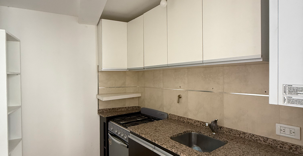 Cómodo departamento de 55 m², con 1 dormitorio, baño completo con antebaño y un luminoso living comedor con cocina integrada y un pequeño balcon.